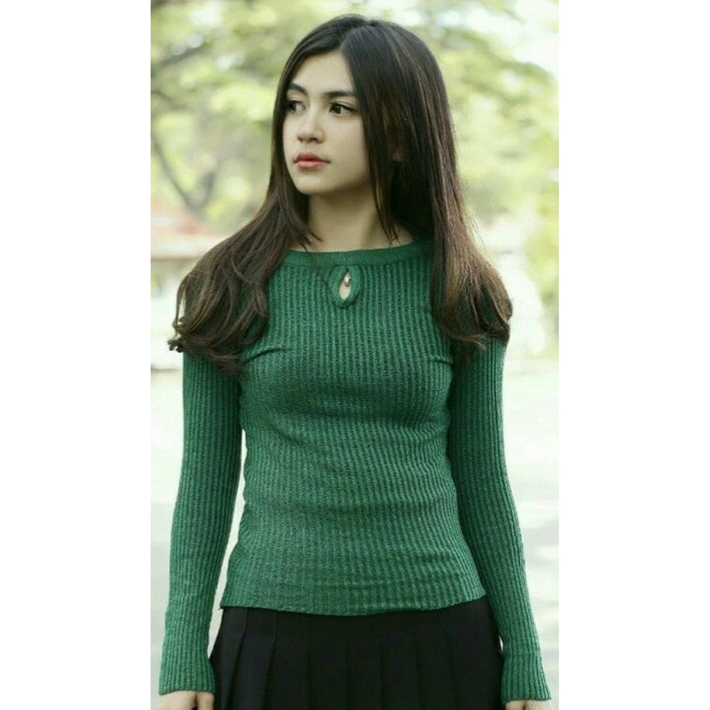 Rib kaos sweater turtle neck polos leher tinggi tangan panjang murah jumbo kaos leher tinggi. Manset baju jumbo atasan wanita big size lengan panjang army turtle neck.